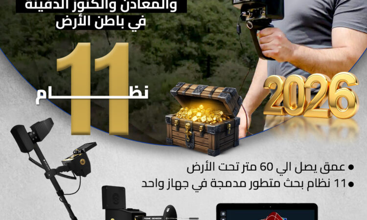 ابتكار ألماني يجمع بين 11 نظام بحث متطور داخل جهاز واحد، ليمنحك قدرة مذهلة على كشف الذهب الخام، الذهب الأثري، المعادن الثمينة، الأحجار الكريمة، وحتى الفراغات والكهوف والمقابر القديمة بدقة عالية.