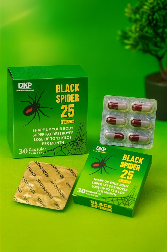 Black Spider 25 هو واحد من أشهر منتجات دعم الحرق والرشاقة، تم تصميمه خصيصًا للأشخاص اللي عايزين يشدّوا جسمهم ويعززوا معدل الحرق بشكل ملحوظ على مدار اليوم. المنتج بيجمع بين تركيبة مركّزة من المكوّنات النباتية والمنشّطة اللي بتساعد الجسم يشتغل بكفاءة أعلى، وبتديكي دفعة طاقة تخليكي قادرة تكمّلي يومك بدون إحساس بالتعب.