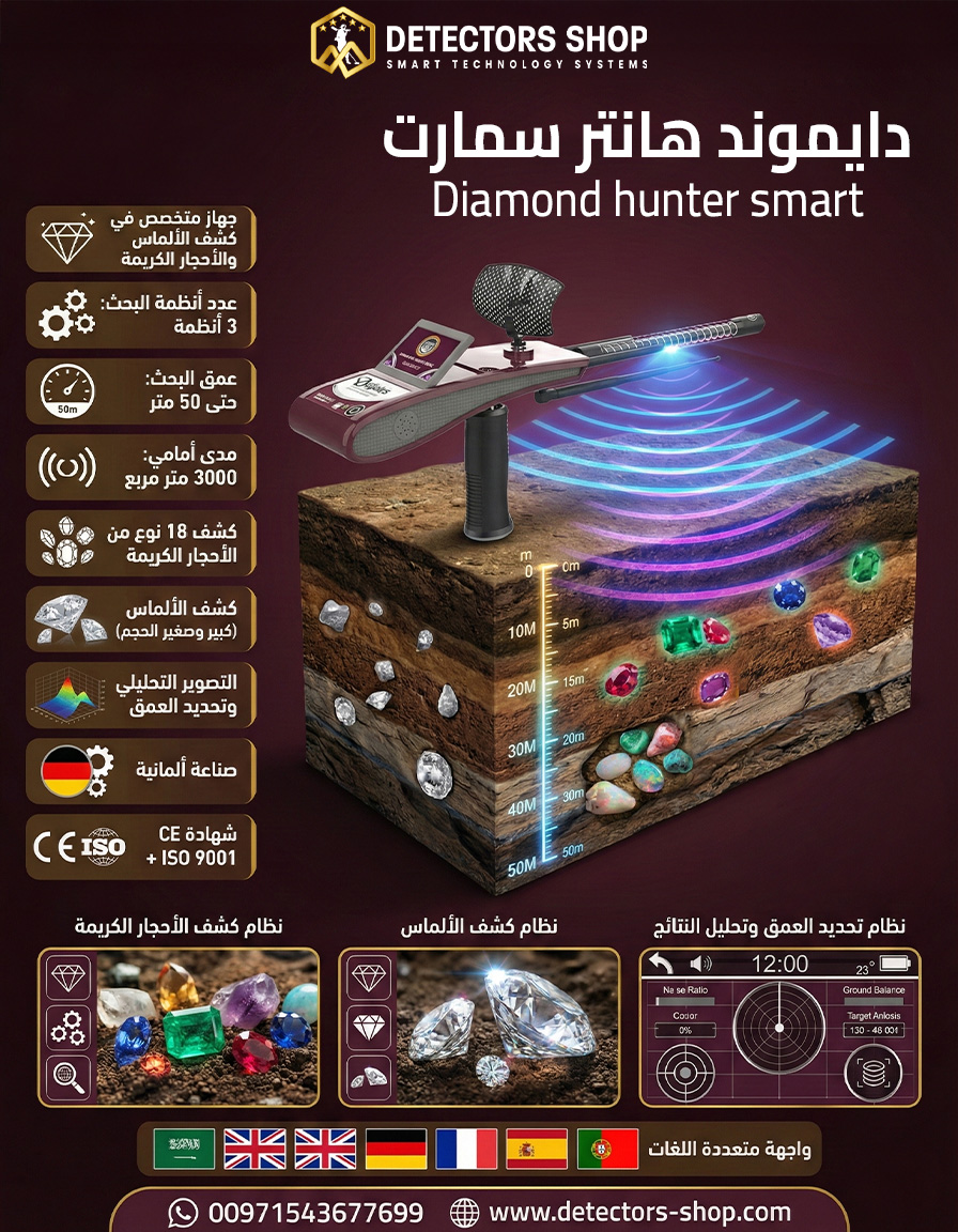 #دايموند_هانتر_سمارت #كشف_الألماس #أحجار_كريمة #صيد_الكنوز #تنقيب_الذهب #جهاز_كشف_المعادن #تقنية_الاكتشاف #عمق_50_متر #مدى_3000_متر #الماس_المدفون #الياقوت_الزمرد #كنوز_الأرض #ديتيكتورز_شوب #دبي #الإمارات #معدات_التنقيب #تكنولوجيا_الكشف #مغامرة_تنقيب #استكشاف_العمق