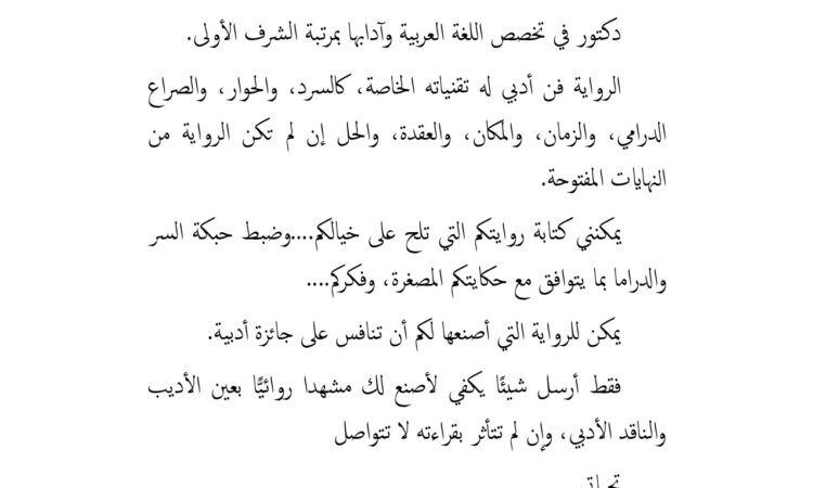 تأليف الرواية والقصة القصيرة والنوفيلا، وإصلاح الحبكة الدرامية وتقنيات السرد والدراما