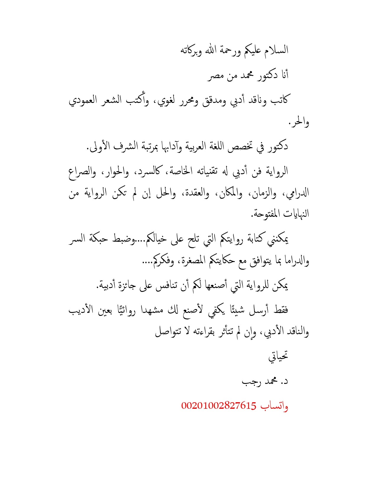 د. محمد رجب. واتساب: 00201002827615