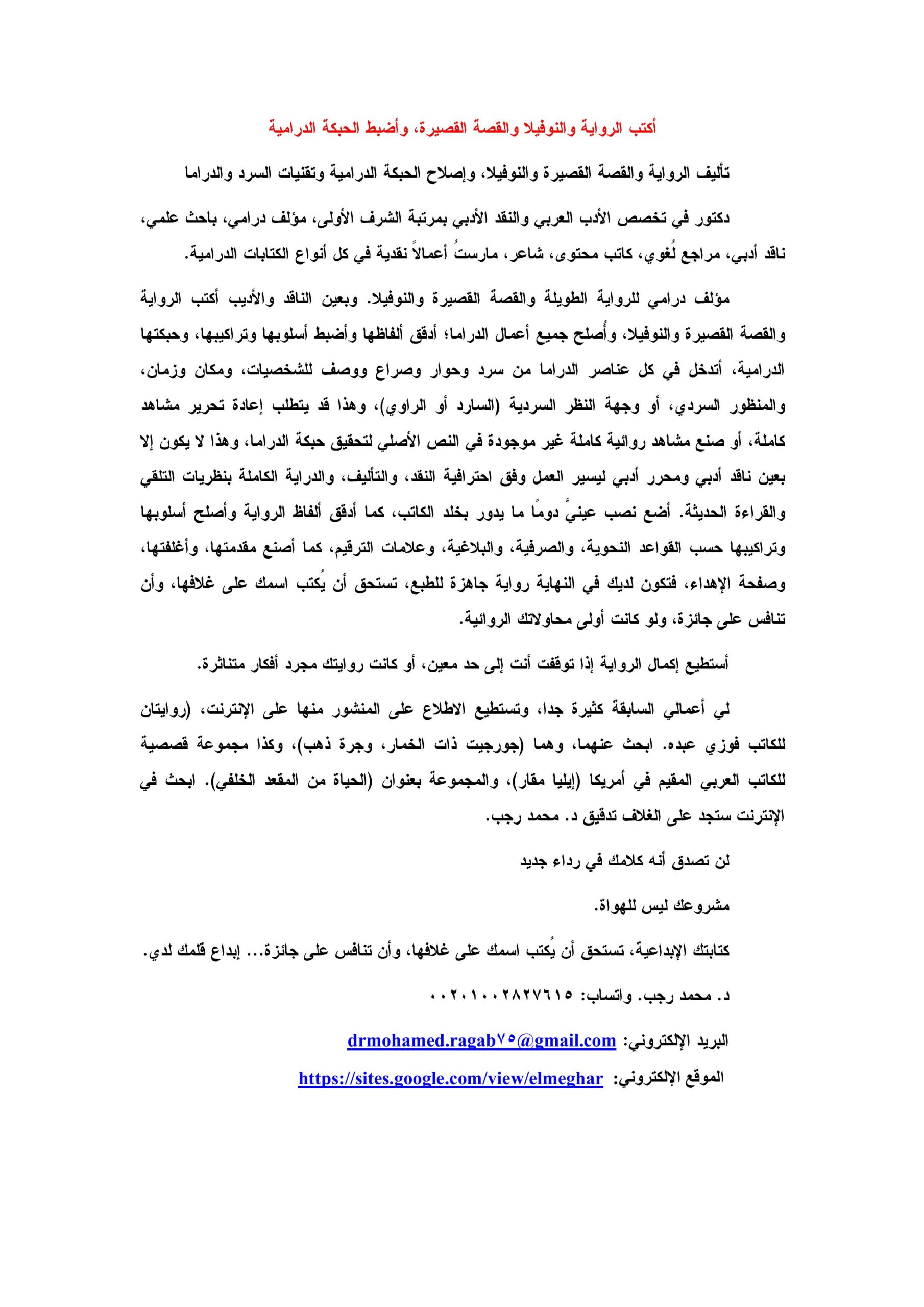البريد الإلكتروني: drmohamed.ragab75@gmail.com