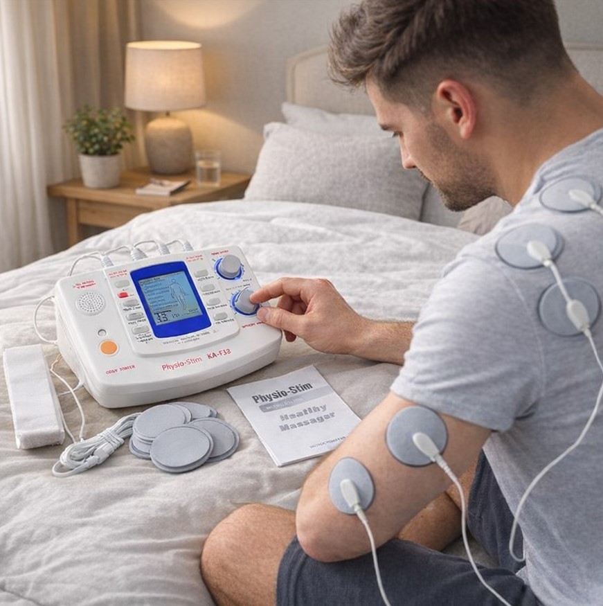 وهنا بييجي دور جهاز Physio-Stim كحل عملي، ذكي، وآمن يساعدك ترجع الإحساس بالراحة من غير ما تضطر تروح مراكز علاج أو تضيع وقتك.