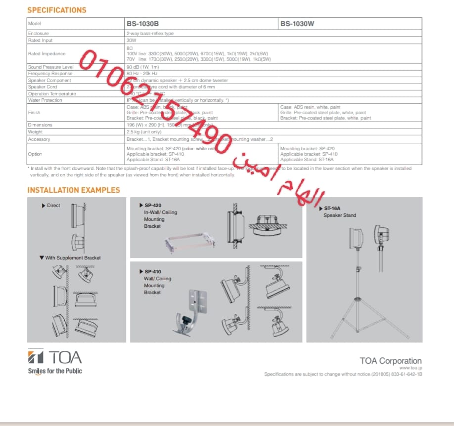 سماعة حائطية ذات شكل اسيابى بالمواصفات التاليه : الموديل BS-1030W : القدره : 30 وات وتعمل ( 30 – 20 – 15 – 10 – 5 ) وات اللون : أبيض الماركه TOA : المنشأ : اندونيسى الموديل BS-1030W : اماكن التركيب : الكنائس – المساجد – الشركات – المولات – المستشفياتالبيع بضمان الوكيل الشركة الدوليه للتجاره والاتصالات IBC للاستفسار مســـــول المبيعـــــات : الهام امين 01062157490