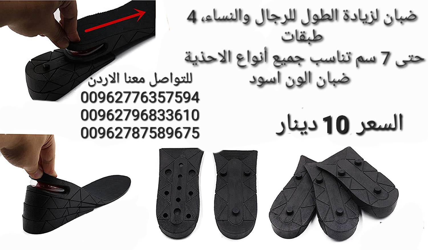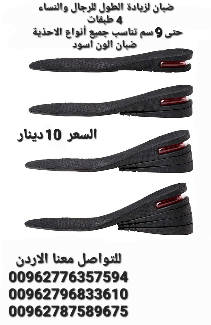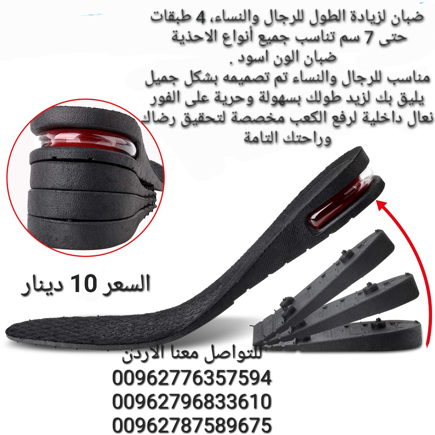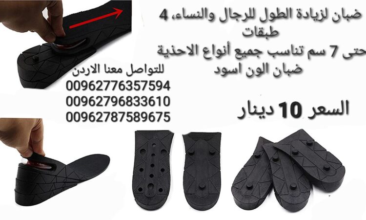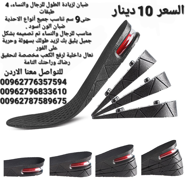 ضبان أسود طول مكون من أربع طبقات نعل داخلي لزيادة الطول (ضبانات) مصنوعة من 4 طبقات قابلة للتعديل (تصل لـ 3-9 سم), باللون الأسود، تستخدم للرجال والنساء وتناسب معظم أنواع الأحذية لزيادة الطول.