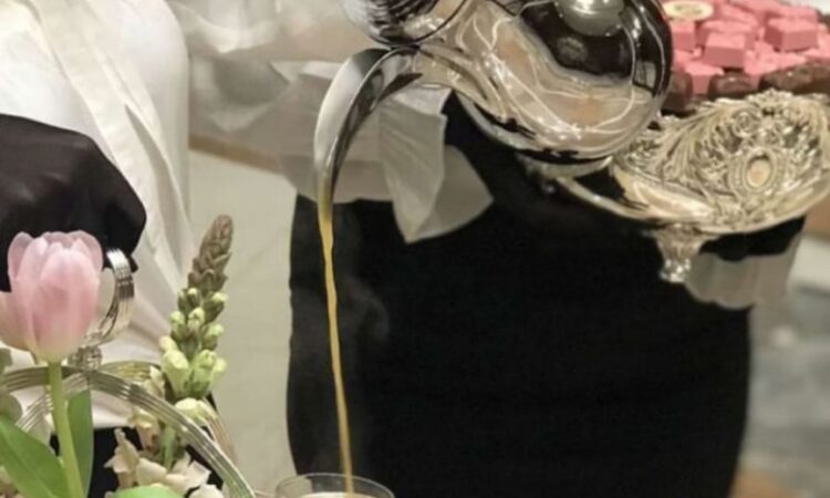 تقديم القهوة بإتيكيت ضيافة عربية أصيلة.