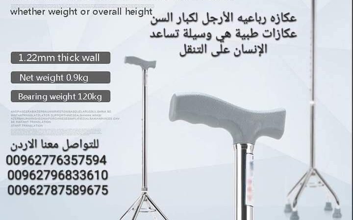 عكاز مشي لكبار السن تتكون من أربع أرجل ودعامات مقاومة للانزلاق لمنحك المزيد من التوازن والأمان. تحتوي على مقبض يد مريح مما يسهل استخدام العكاز. يمكن ضبط طول العكاز لتناسب كافة الأطوال، كما تتميز بوزنها الخفيف حيث لا تجعلك تشعر بالثقل أثناء استخدامها. عكاز بأربع أرجل تساعد على التنقل والحركة بيسر وسهولة.• مناسبة لمرحلة ما بعد العمليات، وكبار السن ومرضى العظام والمفاصل .