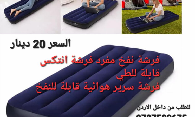فرشة هوائية قابلة للنفخ من شركة انتكس العالمية الأصلية. توفر الفرشة الهوائية راحة مثالية واستقرارًا أثناء النومباختصار، فرشة هوائية قابلة للنفخ من انتكس تجمع بين الراحة والتقنية المتطورة مما يجعلها الخيار المثالي للنوم المريح في أي مكان وزمان.مناسب للتخييم والاستخدامات المنزلية والمائيةالأبعاد: (76سم * 1.91سم * 25سم).