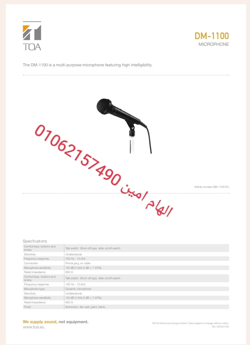 البيع بضمان الشركة الدولية للتجارة والأتصالات IBC وكيل ماركة TOA اليابانى فى مصــــرللاستفسار مســـؤل المبيعـــــــات : الهــــــــا م أمـــــــين 01062157490