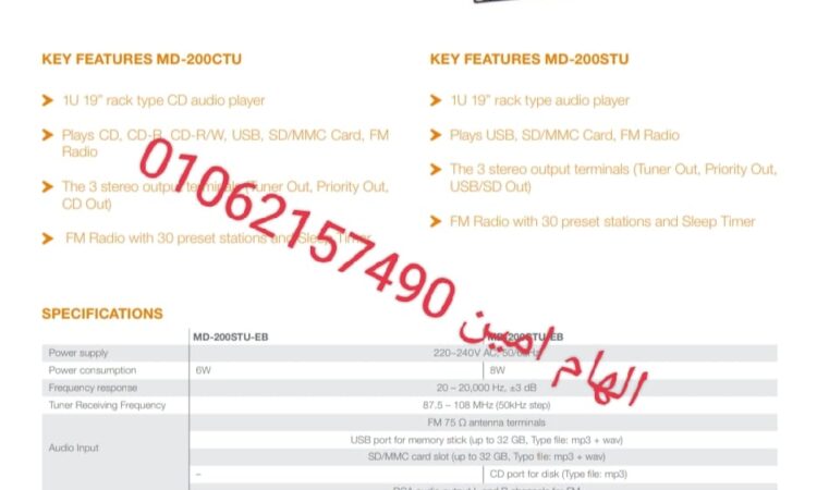 مصدر مشغل صوت توا MD-200CTU-EB   جهاز مشغل صوت توا يركب فى الراك مباشره
