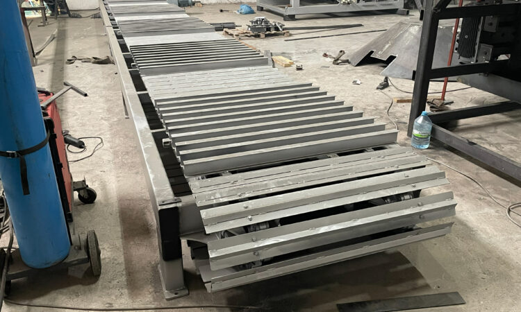 - نظام سيور ناقلة لنقل الباليت بين الروبوتات والماكينة – عدد 1