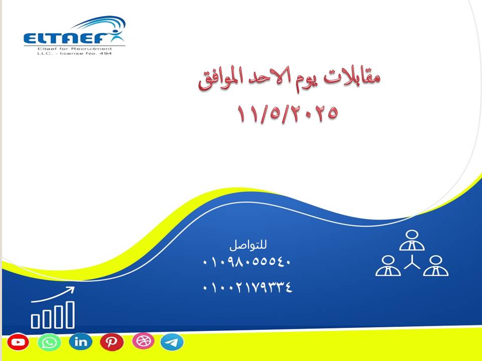 📍📣 (( علما بأنه تم تحديد موعد للمقابلة يوم الاحد الموافق 11/5/2025 من الساعه 2 : 4 مساءا بمقر شركة الطائف في : 77 شارع سوريا – المهندسين – أمام توكيل نيسان -الدور الثالث ))