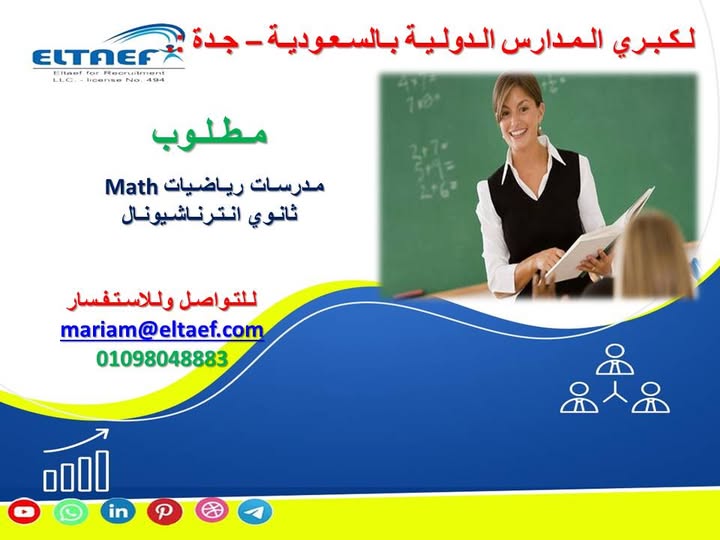 تعلن شركة الطائف للتوظيف بالخارج لكبرى المدارس الدولية بالسعودية … جدة :-