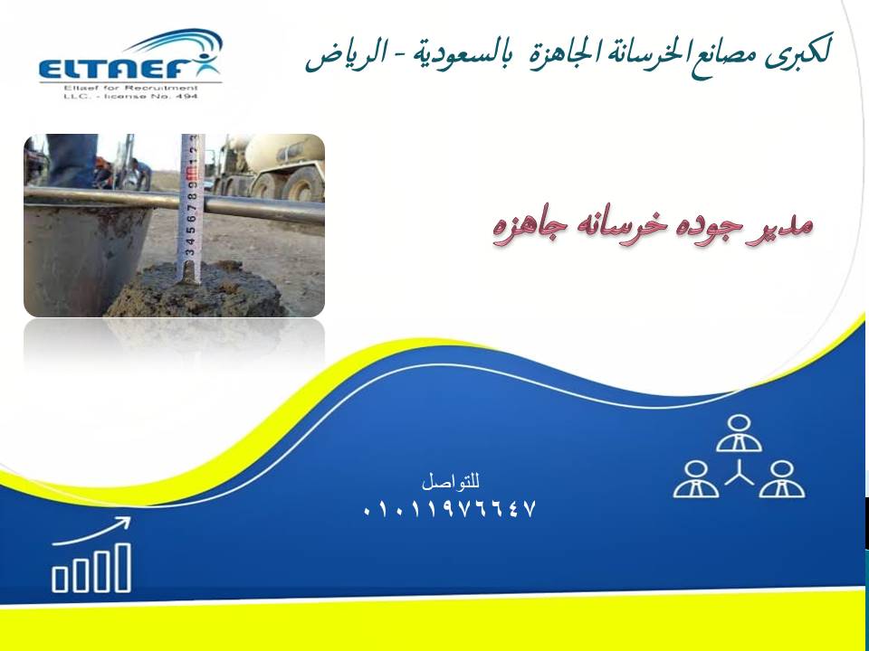 ✅ – خبره لا تقل عن ١٠ سنوات في الخرسانه الجاهزه كمدير جوده