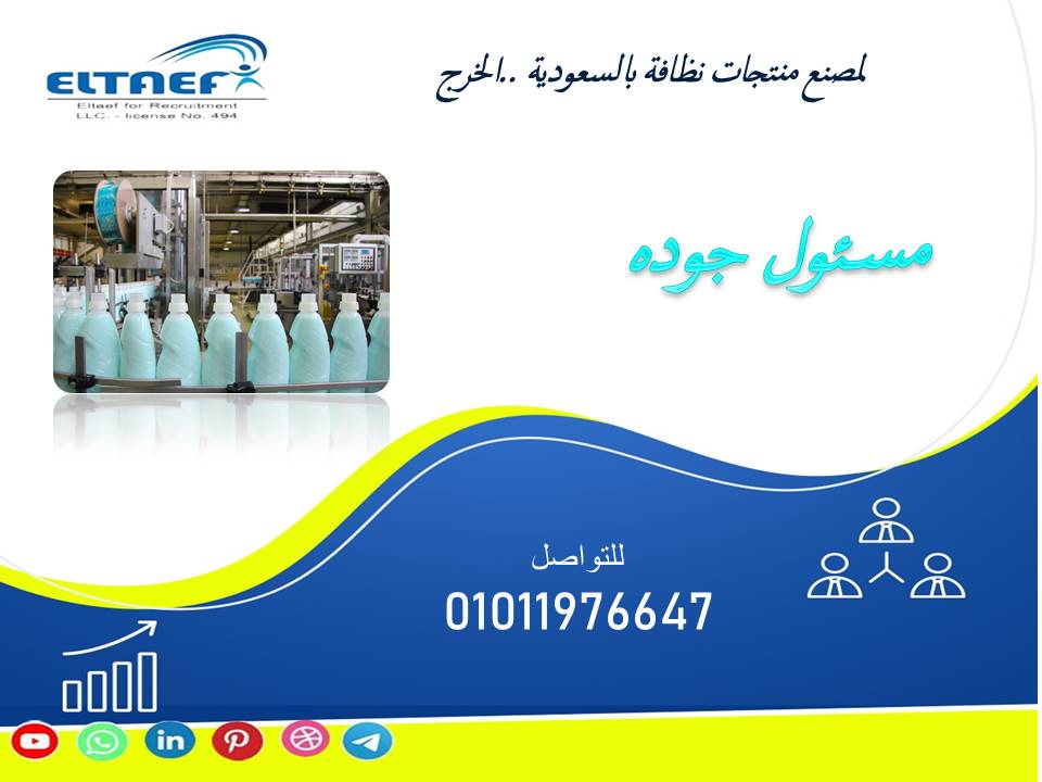تعلن شركة الطائف للتوظيف بالخارج  لمصنع  منتجات نظافة بالسعودية ..الخرج   :-