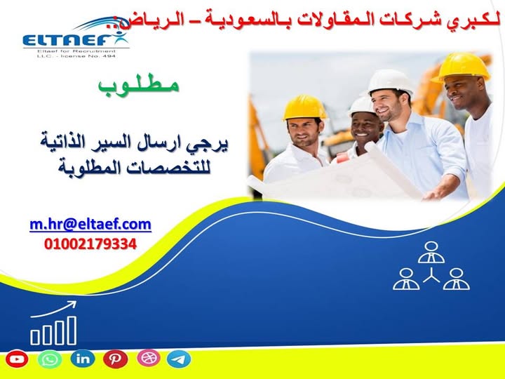 تعلن شركة الطائف للتوظيف بالخارج   لكبرى شركات المقاولات بالسعودية -الرياض   :-