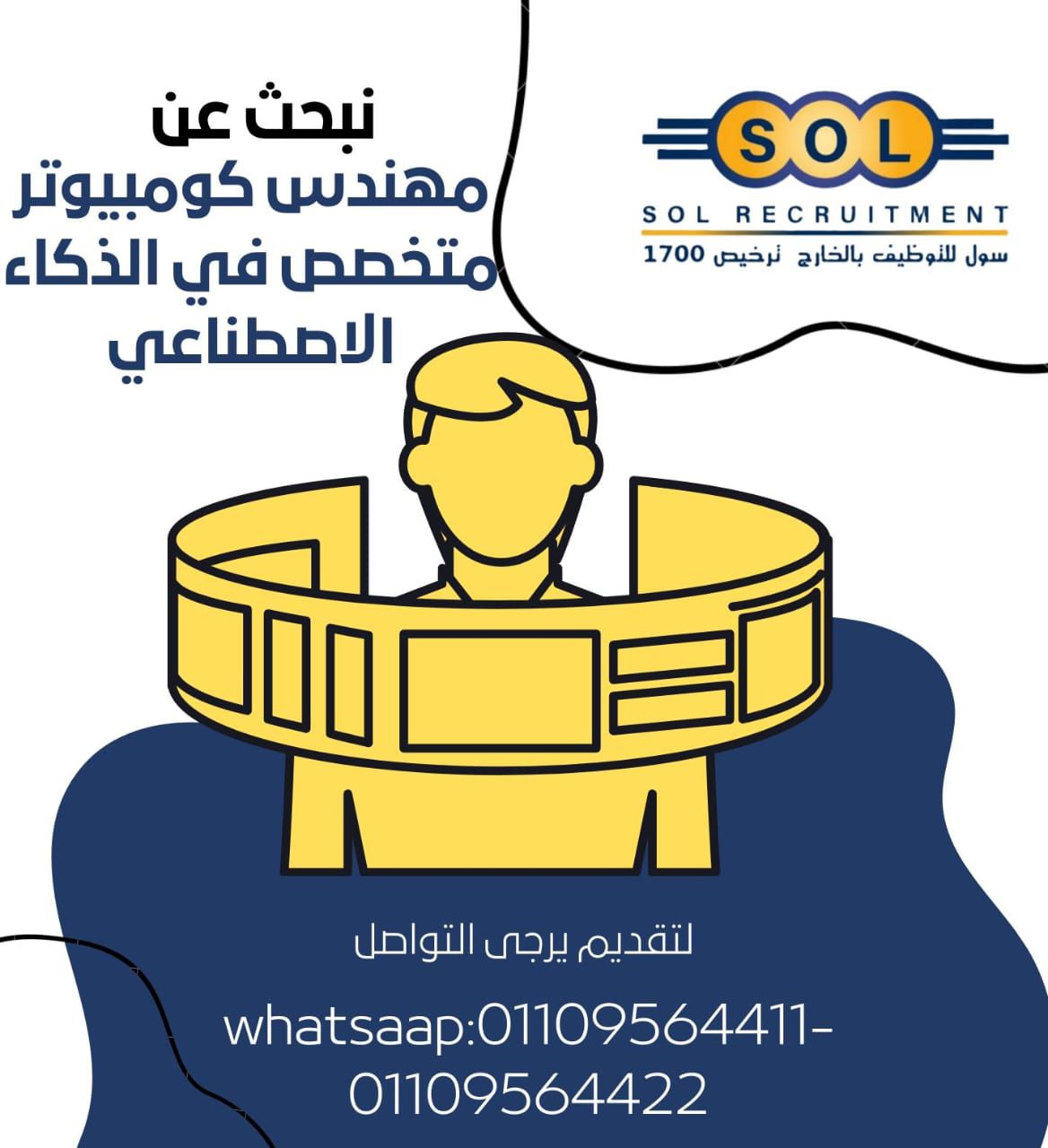 فرصة عمل مميزة – مهندس ذكاء اصطناعي (AI Engineer) لكبرى الشركات العقارية بالدمام لتطوير مشاريعها الذكية. المسمى الوظيفي: مهندس ذكاء اصطناعي (AI Engineer) الشروط والمتطلبات:الخبرة: خبرة عملية لا تقل عن 5 سنوات في مجال الذكاء الاصطناعي وتطبيقاته.إجادة التعامل مع أدوات وتقنيات الـ Machine Learning و Deep Learning.مهارات تواصل ممتازة والقدرة على العمل ضمن فرق تقنية متقدمة. العرض الوظيفي والمميزات:الراتب: يبدأ من 5000 ريال سعودي (يحدد الراتب النهائي حسب الخبرة).موقع العمل: مدينة الدمام، السعودية.توفر الشركة (بدل السكن – التأمين الطبي – وكافة البدلات النظامية). للتقديم: يرجى إرسال السيرة الذاتية (CV) مع كتابة “مهندس ذكاء اصطناعي – الدمام” في عنوان الرسالة إلى: لينك واتساب مباشر https://wa.me/0201109564422